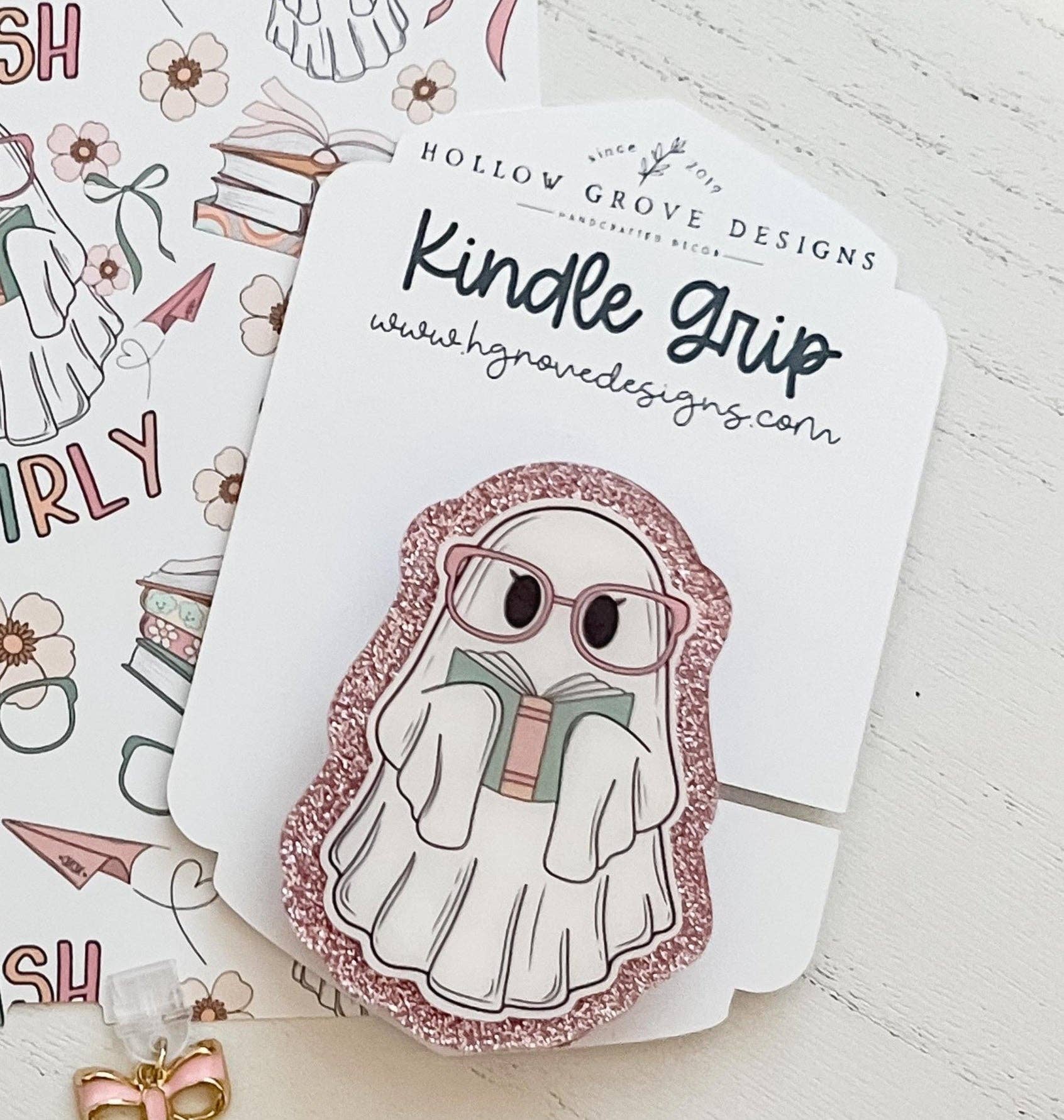 Add a touch of spooky fun to your Kindle with the Bookish Ghosty E-Reader Grip. Featuring a cute pink ghost design, it brings delightful fall vibes to every reading moment. This comfy grip makes holding your Kindle easy and secure, perfect for those cozy autumn nights filled with ghost stories and pumpkin spice.