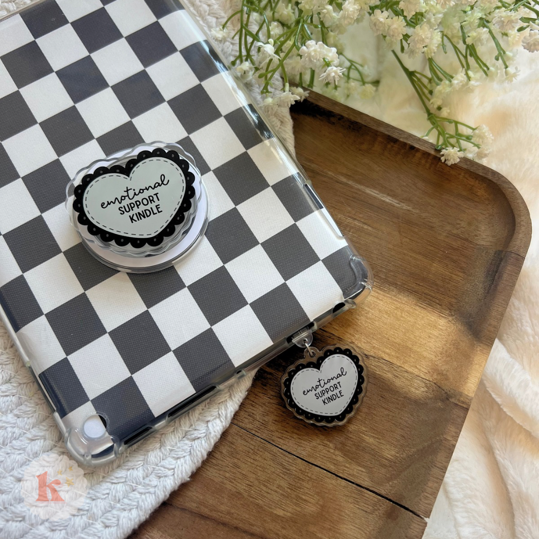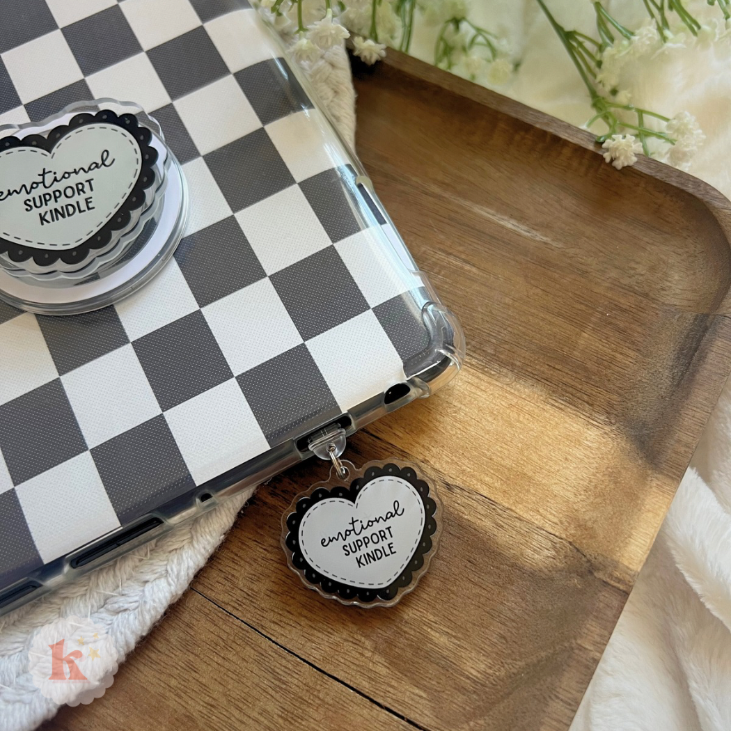 Carry your emotional support wherever you go with the "Emotional Support" Kindle Charm. Designed for devoted Kindle readers, this daring dust plug not only protects your device from dust but also makes a bold statement about your bookish therapy. Let your Kindle be a fearless companion in every story you escape to.