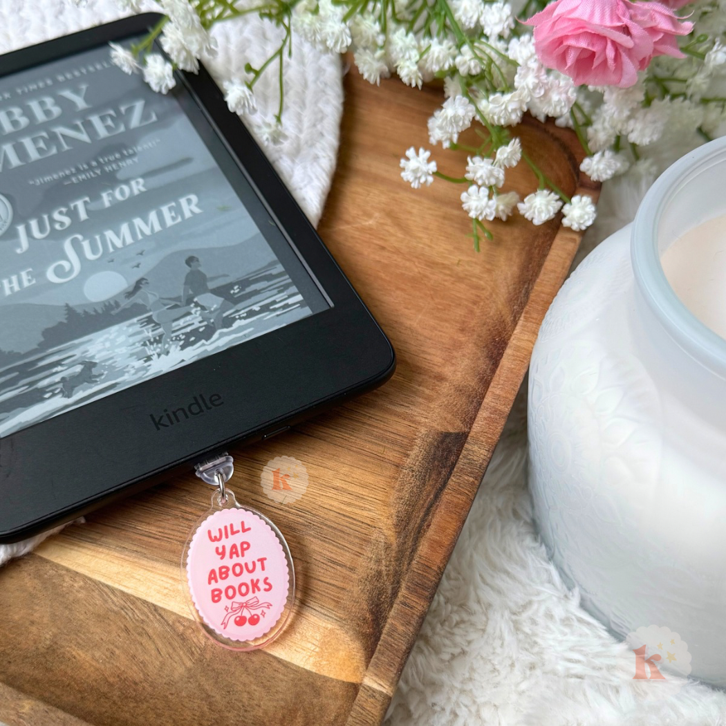 Show off your love for all things bookish with the "Yap About Books" Kindle Charm! This playful dust plug keeps your Kindle clean while declaring your status as a proud book influencer. Perfect for readers who love to chat, share, and celebrate stories everywhere they go.